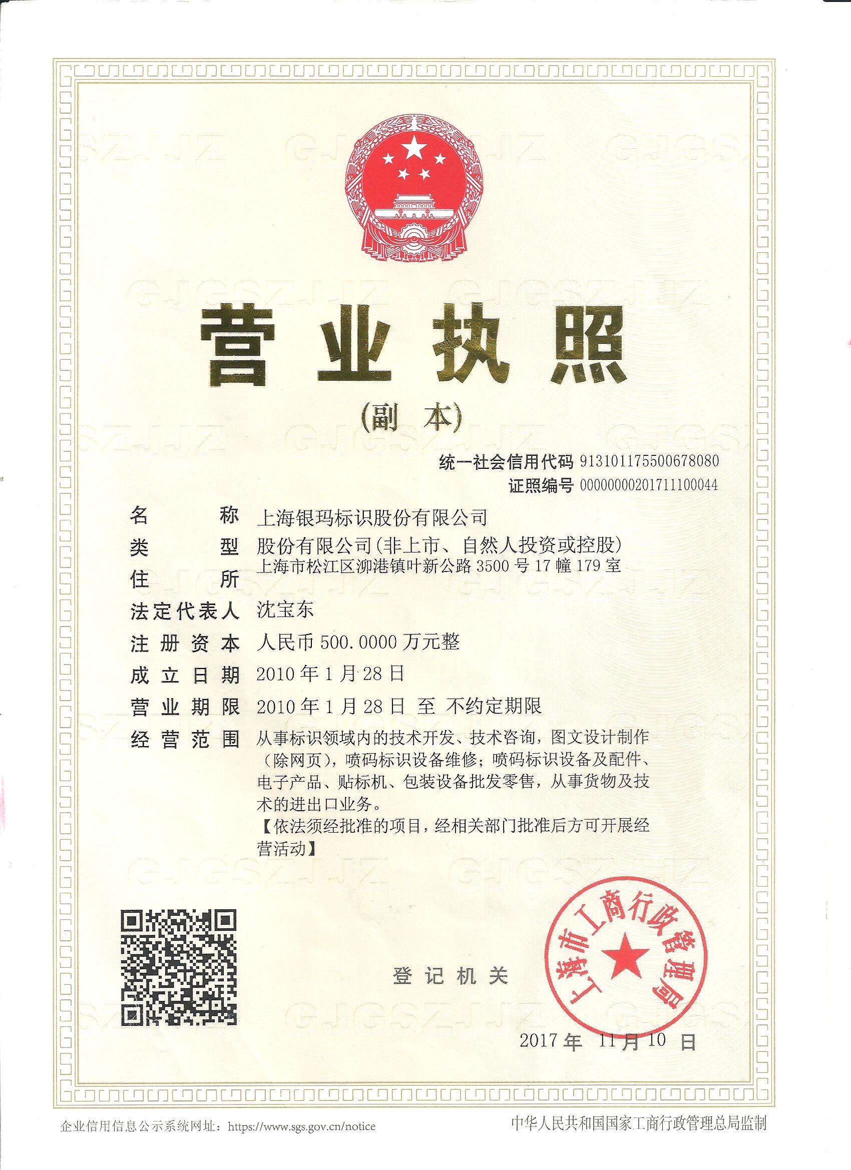 上海銀瑪標識股份有限公司(原名:上海銀瑪標識技術有限公司)成立于2010年元月。是專業(yè)從事噴碼標識設備、激光智能標識系統及材料表面賦碼技術等研發(fā)設計、推廣應用的企業(yè)。可為用戶提供“一物一碼”技術支持與服務。公司2015年通過ISO9001質量管理體系認證,為上海市科技創(chuàng)新型中小企業(yè),并獲市科技創(chuàng)新基金支持。